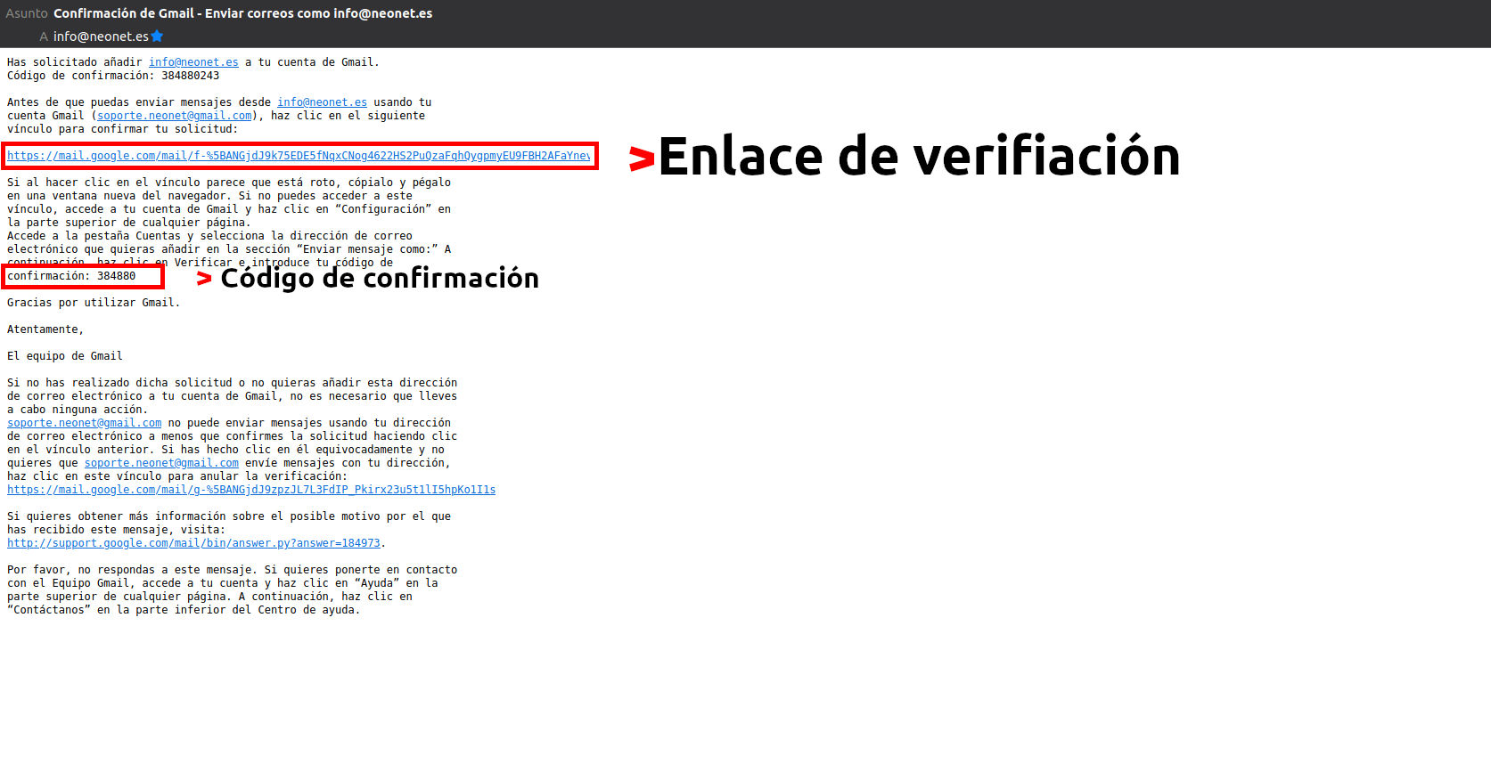Finalizar la confirmación de envío de correo de empresa desde Gmail