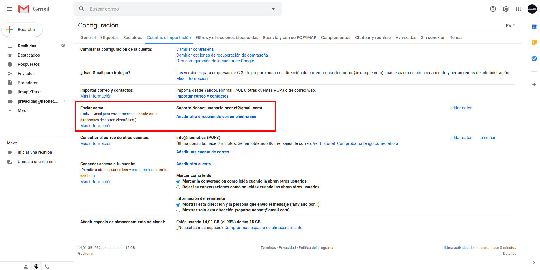 Enviar correos desde cuenta de correo de empresa en Gmail